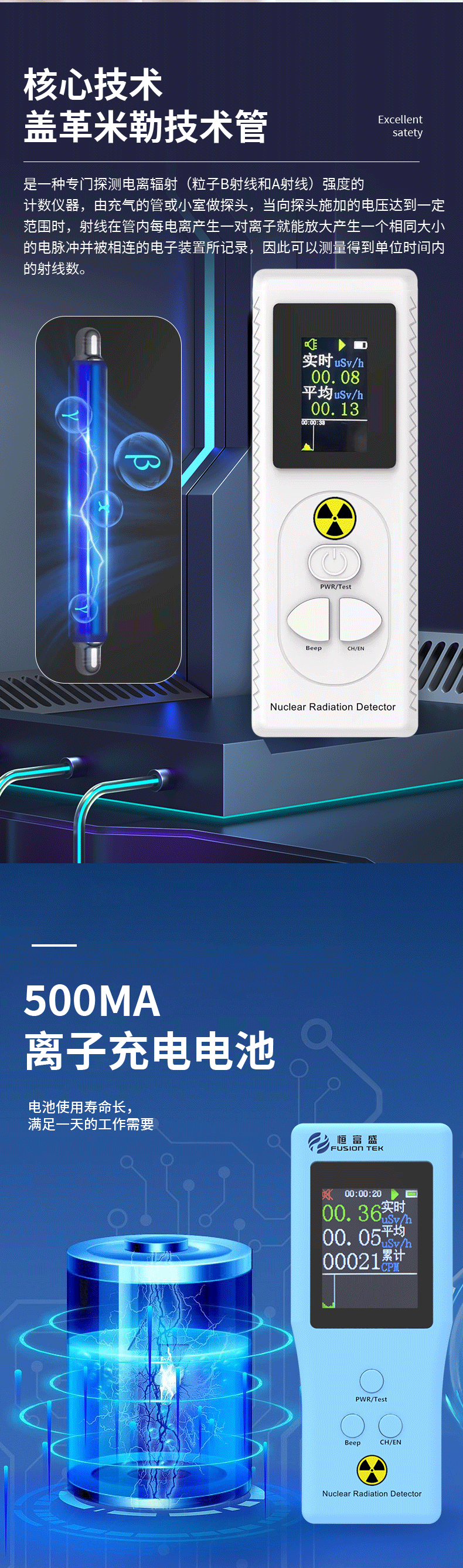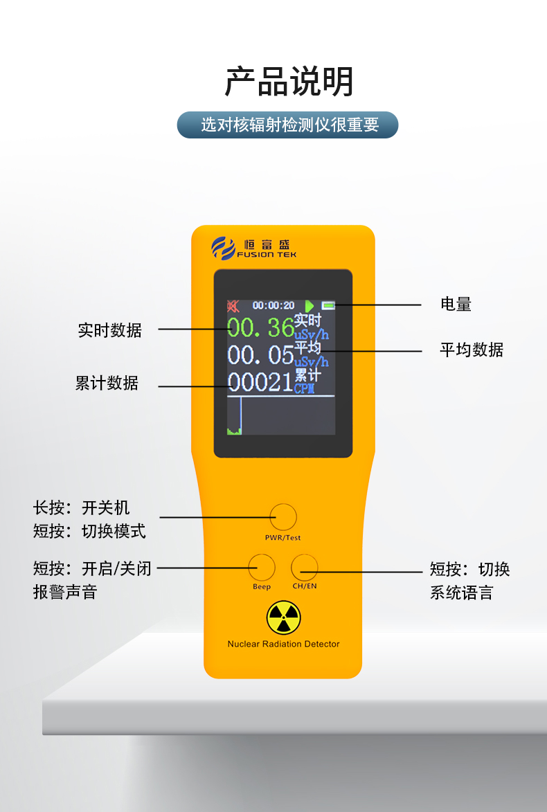核輻射檢測儀的工作原理基于核輻射與物質(zhì)相互作用產(chǎn)生的效應(yīng),不同類型的核輻射在探測器中產(chǎn)生特定的效應(yīng),然后通過測量這些效應(yīng)判斷輻射的存在核強(qiáng)度。
